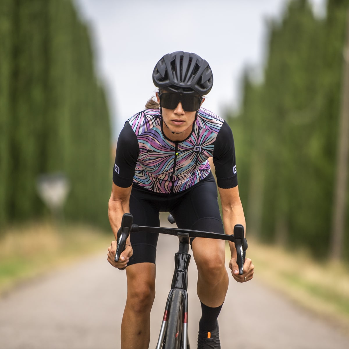 Das PRAGMA ART LADY JERSEY von ALÉ vereint Funktionalität und Design und unterstreicht den einzigartigen Stil seiner Trägerin. Die unverkennbare Pop-Grafik ist von der Blumenwelt inspiriert und harmoniert perfekt mit dem klassischen Stil der schwarzen Ärmel. Dieses Damen Fahrradtrikot ist dank des MICRO-AERO Gewebe sehr atmungsaktiv und schnelltrocknend und hält somit den Körper kühl und trocken. Die dreiteilige Rückentasche ermöglicht den sicheren Transport von Wertsachen und Snacks.