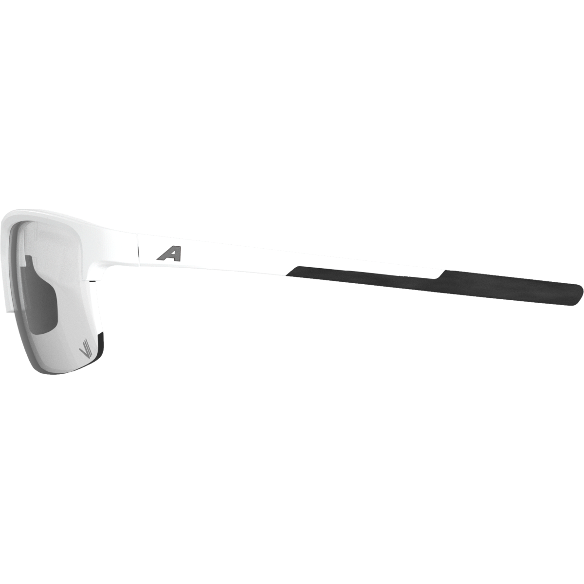 Klassisch gut: die EAGLE V Sportbrille von ALPINA. Ideal für Pendel-Fahrten, lange Strecken, die Pause im Café. Und immer dann, wenn die Sonne scheint oder die Augen geschützt werden müssen. Diese Brille ist eine Sportbrille mit klassischem Zwei-Scheiben-Design. Dank ihrer VARIOFLEX-Technologie sorgt sie bei jedem Wetter für hervorragende Sicht, denn je nach Lichtverhältnissen passen sich die selbsttönenden Scheiben automatisch an. Gummierte Bügelenden halten die Sport-Sonnenbrille sicher am Kopf und sorgen für einen komfortablen Sitz. Die ebenfalls gummierten Nasen-Pads sind individuell anpassbar. Die Sonnenbrille vereint gekonnt Form mit Technologie und Komfort – für klare Sicht bei unterschiedlichen Lichtverhältnissen, Schutz und angenehmen Sitz bei jeder Fahrt.