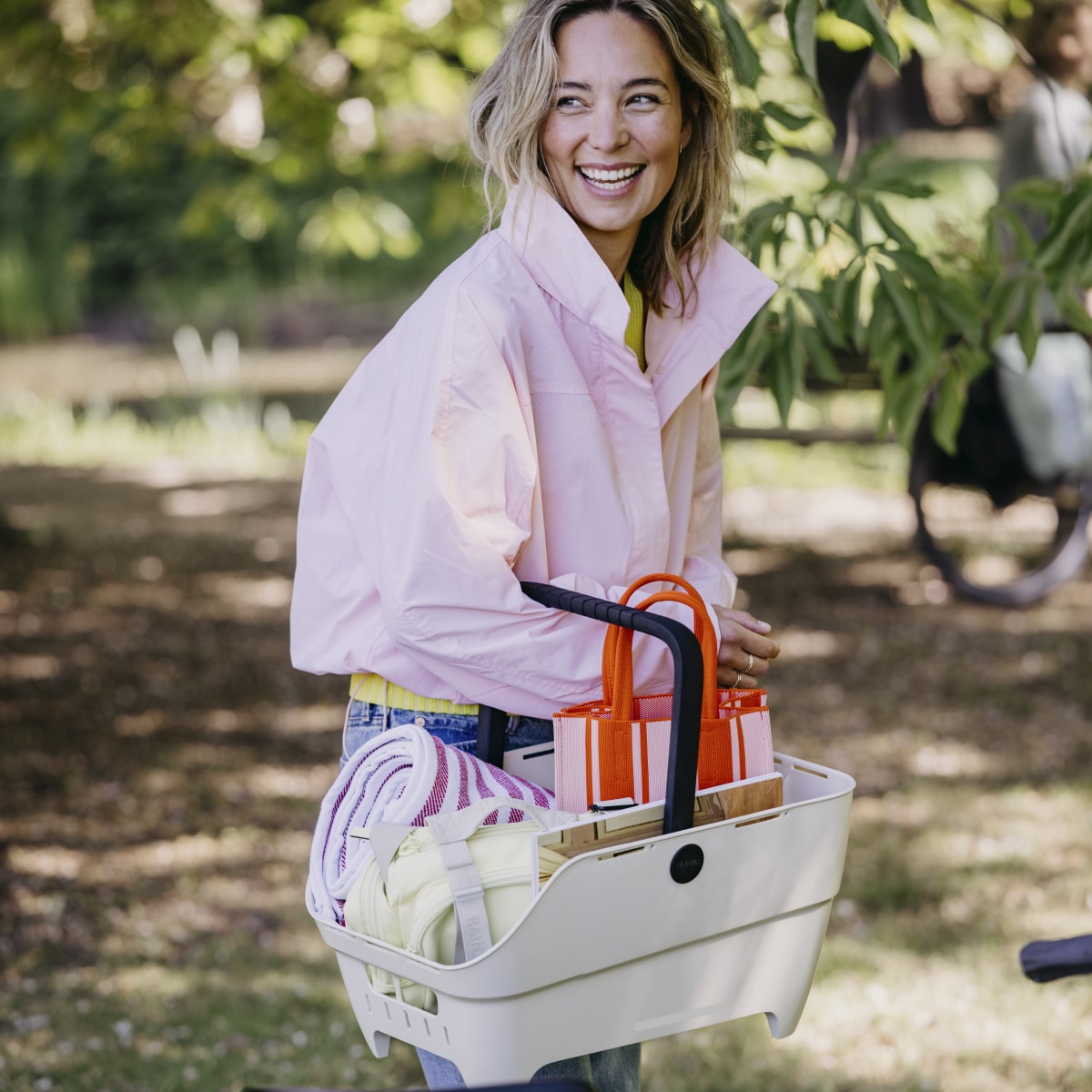 • moderner Gepäckträgerkorb mit Tragegriff aus recyceltem Material