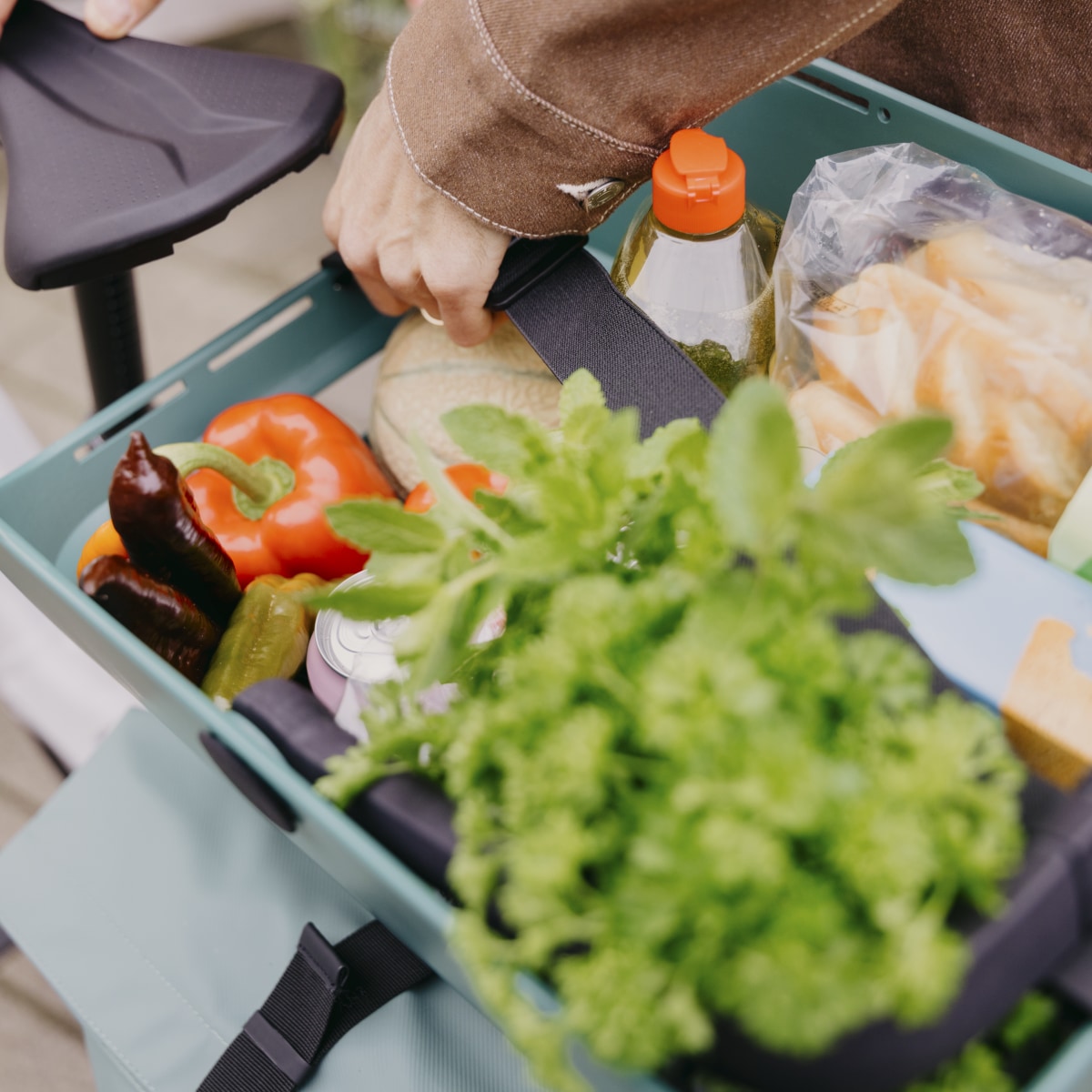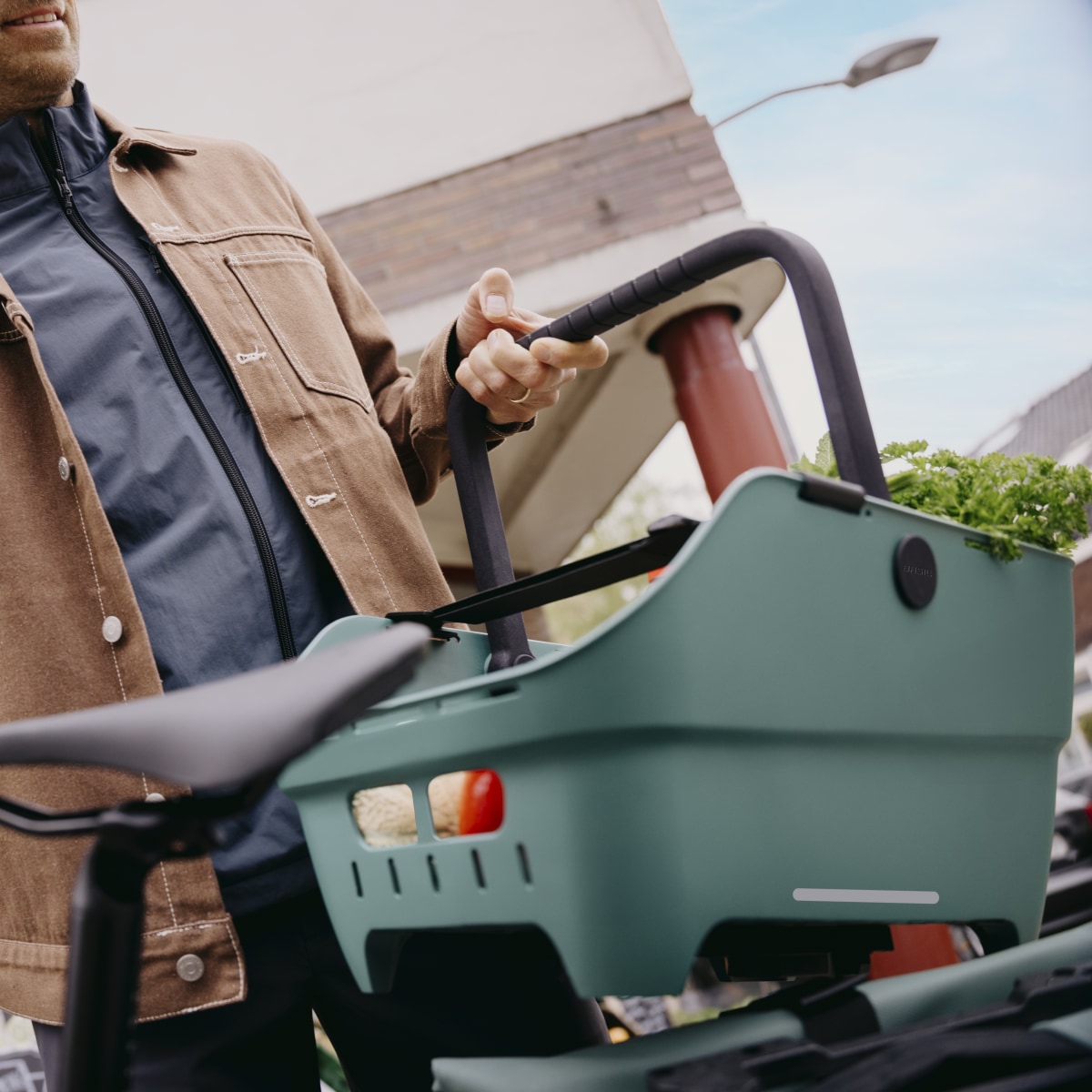 • moderner Gepäckträgerkorb mit Tragegriff aus recyceltem Material