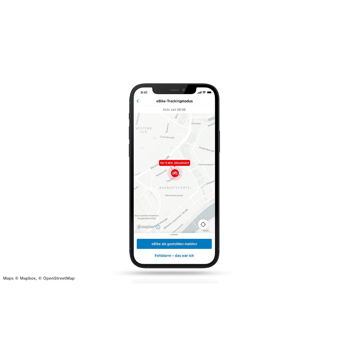Als GPS-Tracker ermöglicht es eine genaue Ortung des E-Bikes. So kannst du jederzeit den Standort deines E-Bikes überprüfen und sicherstellen, dass es noch genau dort ist, wo es hingehört.