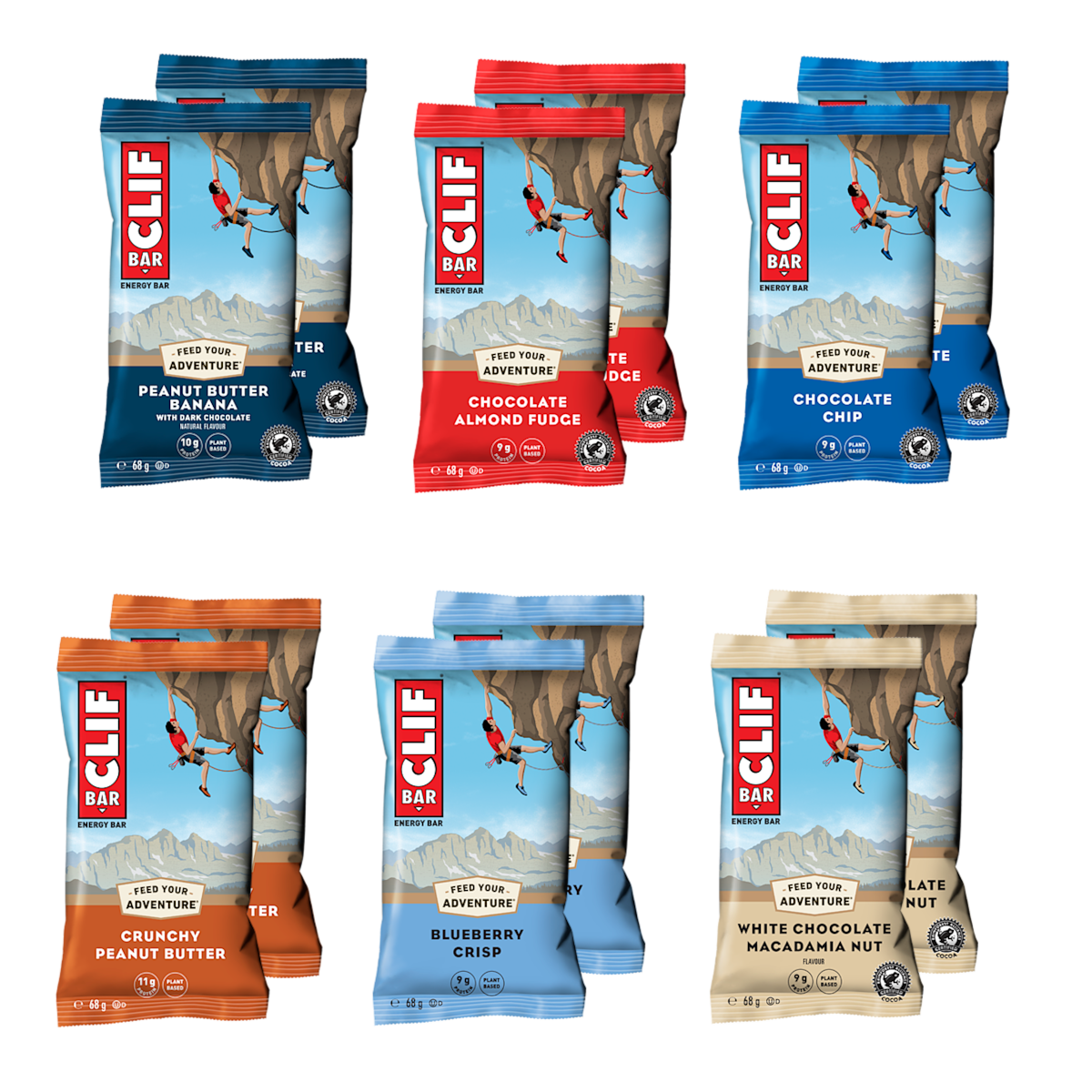 Die abwechslungsreiche Clif Bar Geschmacksvielfalt im Mixpaket mit 6 verschiedenen Sorten! Der auf Haferbasis hergestellte Kohlenhydrat-Riegel empfiehlt sich für sportliche Aktivitäten, Outdoor-Abenteuer oder als kleiner Snack für zwischendurch. Durch den Clif Bar profitierst du von einem speziellen Mix aus Kohlenhydraten, Ballaststoffen und Proteinen. Die Riegel-Rezeptur ist frei von Trans-Fettsäuren, Konservierungsstoffen und Maissirup (ersetzt durch Reissirup). Durch die angenehme Konsistenz ist er auch unter Belastung leicht verzehrbar. Er kann vor-, während- oder nach der Aktivität gegessen werden.
