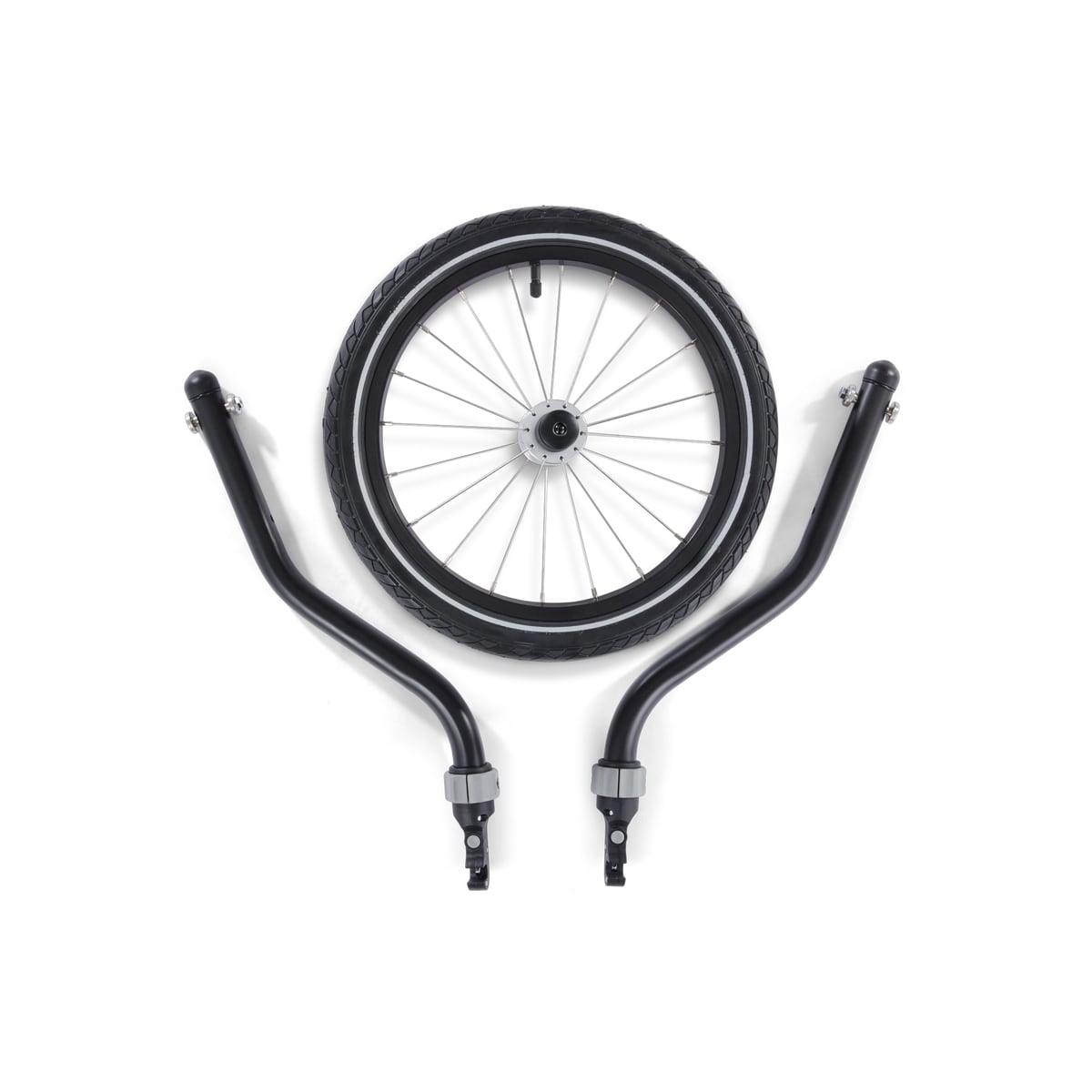 Mit dem Jogger-Set Kid 2 machst du deinen Croozer-Kinderanhänger im Handumdrehen bereit für Outdoor-Aktivitäten zu Fuß. Dank des im Set enthaltenen luftbereiften 16”-Jogger-Rades bist du dabei auf allen Untergründen sicher und komfortabel unterwegs.