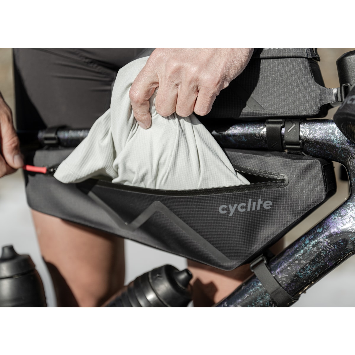 Voll ausgestattet für das nächste Race bist du mit diesem CYCLITE Taschen-Setup (Verfügbarkeit vorbehalten):