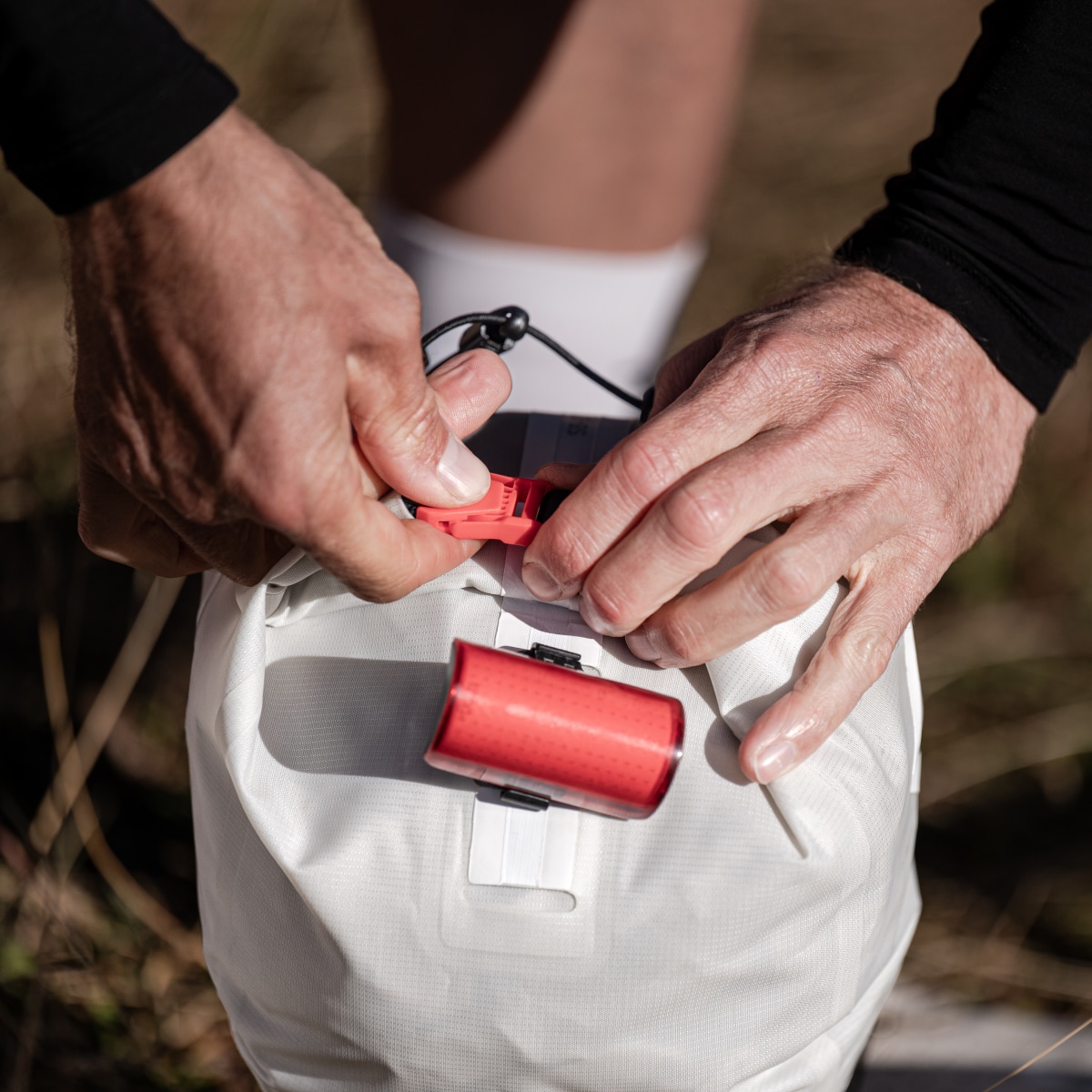 Der kompakte Klassiker für Abenteuer auf dem Bike: Eine Bikepacking Tour ohne eine Satteltasche wie die SADDLE BAG SMALL / 02 von CYCLITE verdient ihren Namen eigentlich nicht. Apropos Name: CYCLITE steht für besonders leichtes, praktisches und stylisches Bike-Equipment, mit dem du auf der nächsten Reise dank geringem Extragewicht Energie sparst. Daher ist auch diese Sattelstütztasche, die bis zu 8 Liter Stauraum bietet, ein Leichtgewicht - ganz ohne Kompromisse in Sachen Stabilität: Damit die Gravel-Tasche bei der Fahrt auf losem Untergrund und im schnellen Tritt nicht ins Ruckeln gerät, verlaufen die Fixierungsgurte für die Sattelstreben unter der Tasche entlang. Zusätzlich sorgt eine Carbonschiene in der Mitte für hohe Formstabilität. Nicht zuletzt hilft das Kompressionsventil dir dabei, dein Reisegepäck kompakt zu verstauen, für möglichst hohe Dichte und ruhiges Verhalten während der Fahrt, egal ob bei einem spontanen Ausflug, bei kürzeren Bikepacking-Trips oder im unsupported Race.