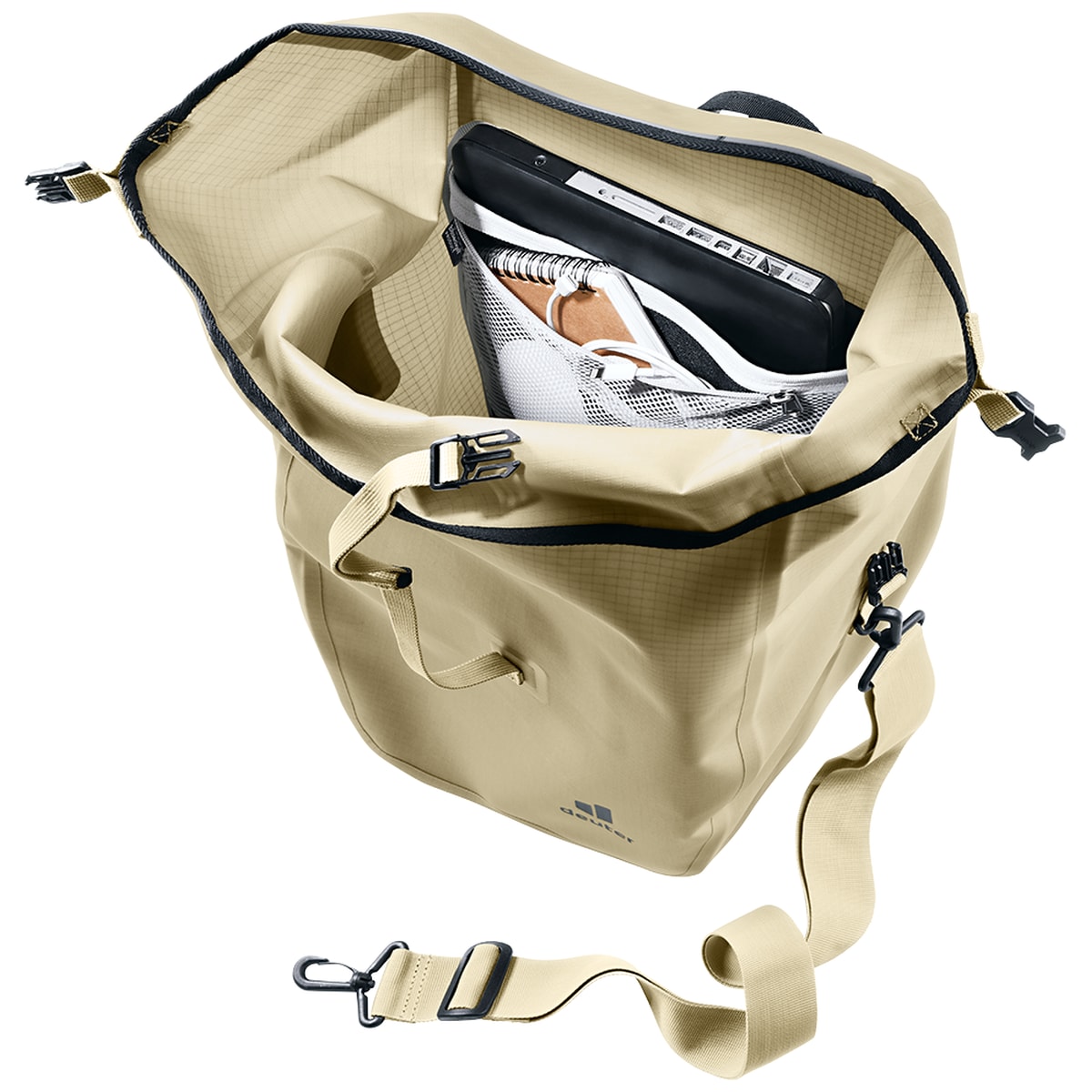 • Roll-Top-Verschluss für bis zu 5 Liter Extravolumen mit seitlicher Fixierung