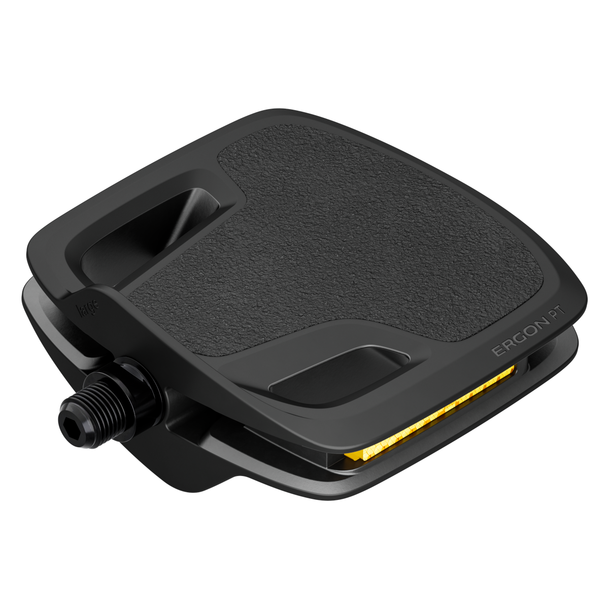Das Ergon PT Pedal fördert eine intuitiv verbesserte Fußausrichtung, damit es auch auf längeren Touren angenehm rund läuft. Während zwei Pedalausführungen für kleine und große Schuhgrößen eine gleichmäßige Druckverteilung ermöglichen, sorgt die rutschhemmende Griptape-Oberfläche für den sicheren Halt beim schwungvollen Tritt ins Pedal. Mit dem Touringpedal von Ergon wird eine hohe Fahr- und Standsicherheit sowie mehr Langstrecken-Komfort spürbar.