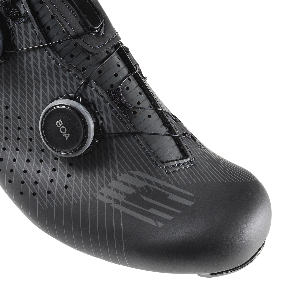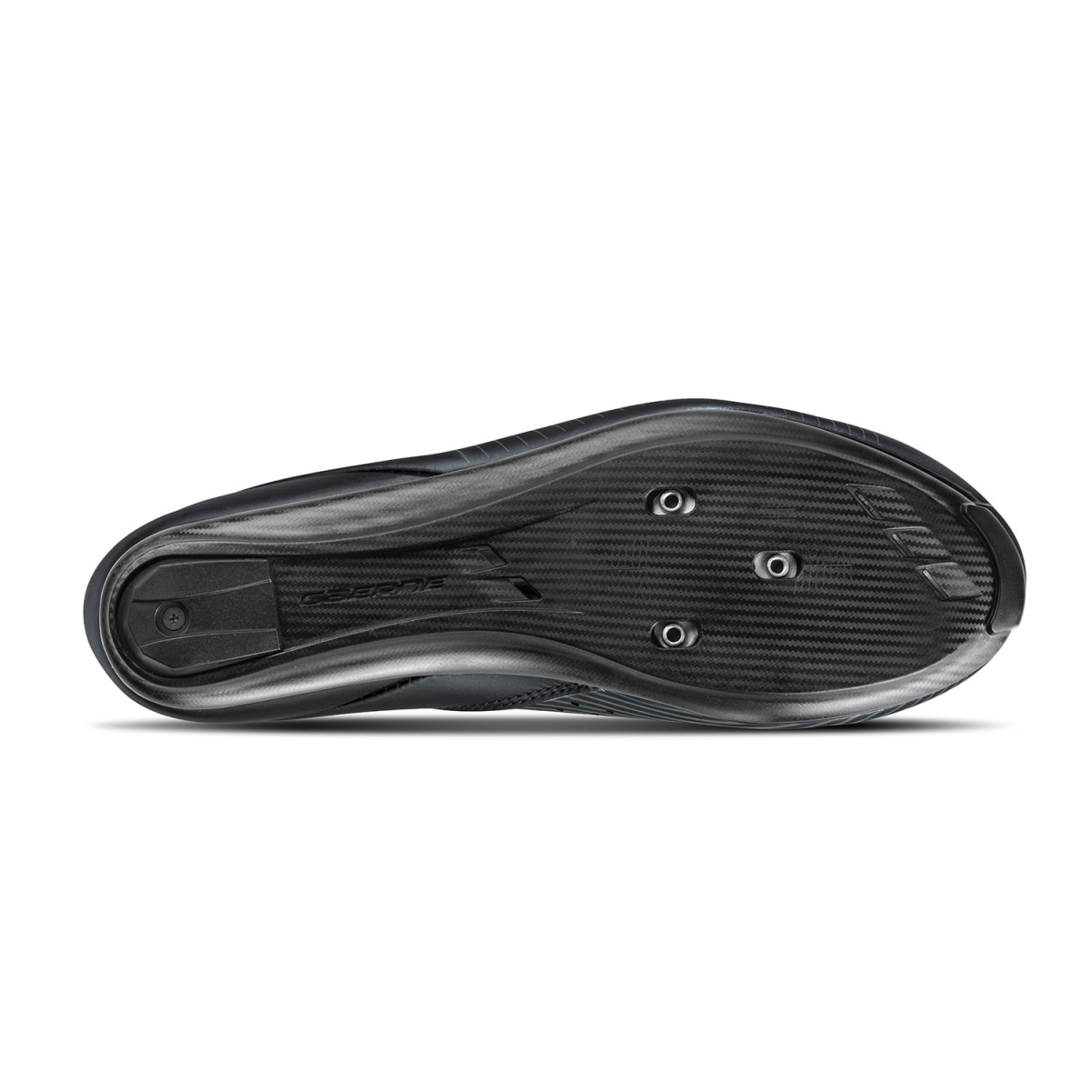 Diese Sohle besteht aus einem mit Carbon angereichertem Nylon, um eine optimale Steifigkeit zu bewirken. Die geringe Dicke sorgt für ein rundes Treten ohne Energiedispersion. Die Stabilität des Fußes wird durch die Form der Sohle mit Plantarbogenbereich erhöht. Fünf Belüftungsöffnungen sorgen für Ventilation im Schuh. Die Sohle hat einen Anti-Rutsch-Einsatz im Zehenbereich und ein austauschbares Pad im hinteren Bereich. Eine Ausrichtungsskala auf der Sohle ermöglicht, die Position der Schuhplatte zu speichern. Die Optionen für die Stollenposition wurden im Vergleich zur vorherigen Sohle um ca. 9 mm erhöht. Steifigkeitsindex der Sohle: 8.