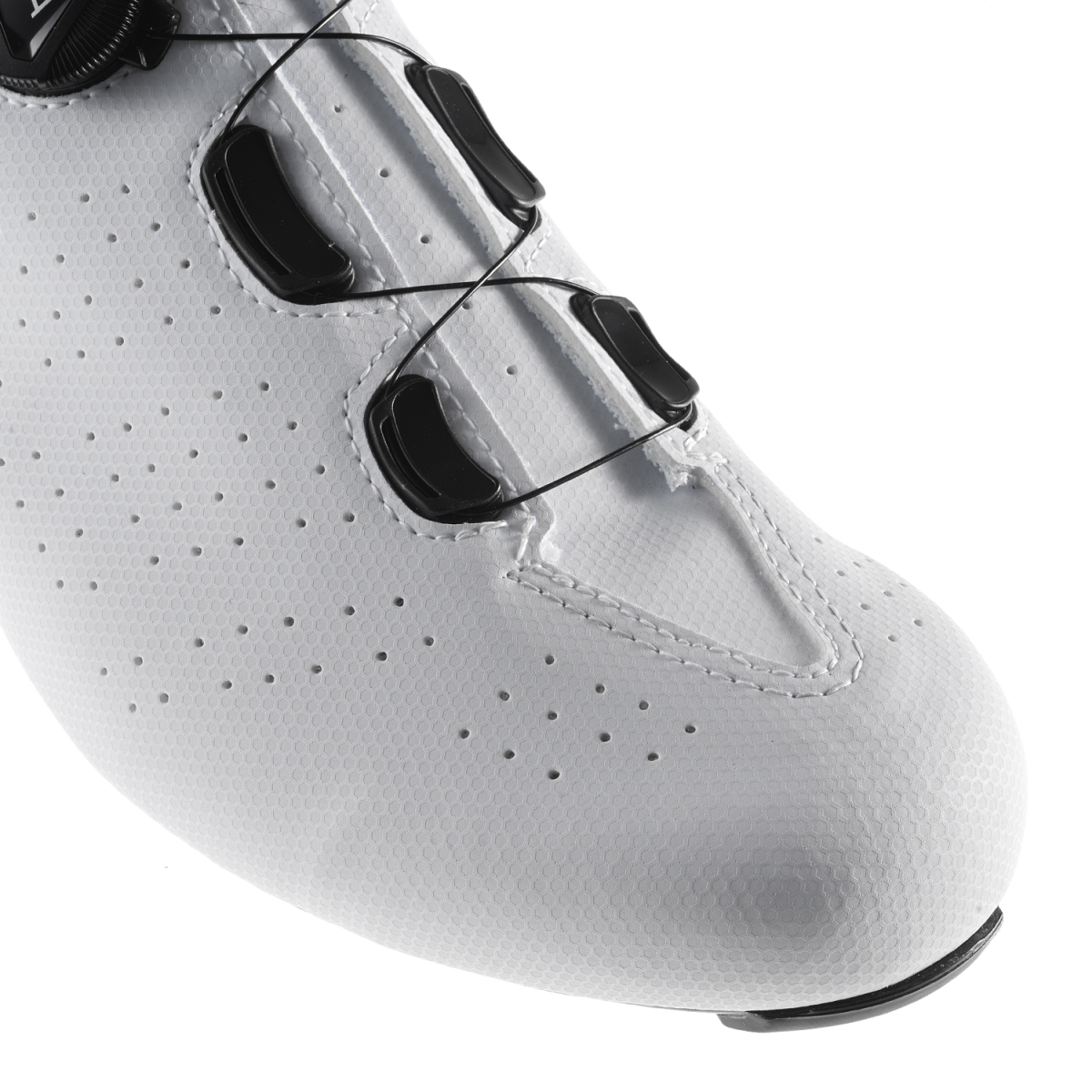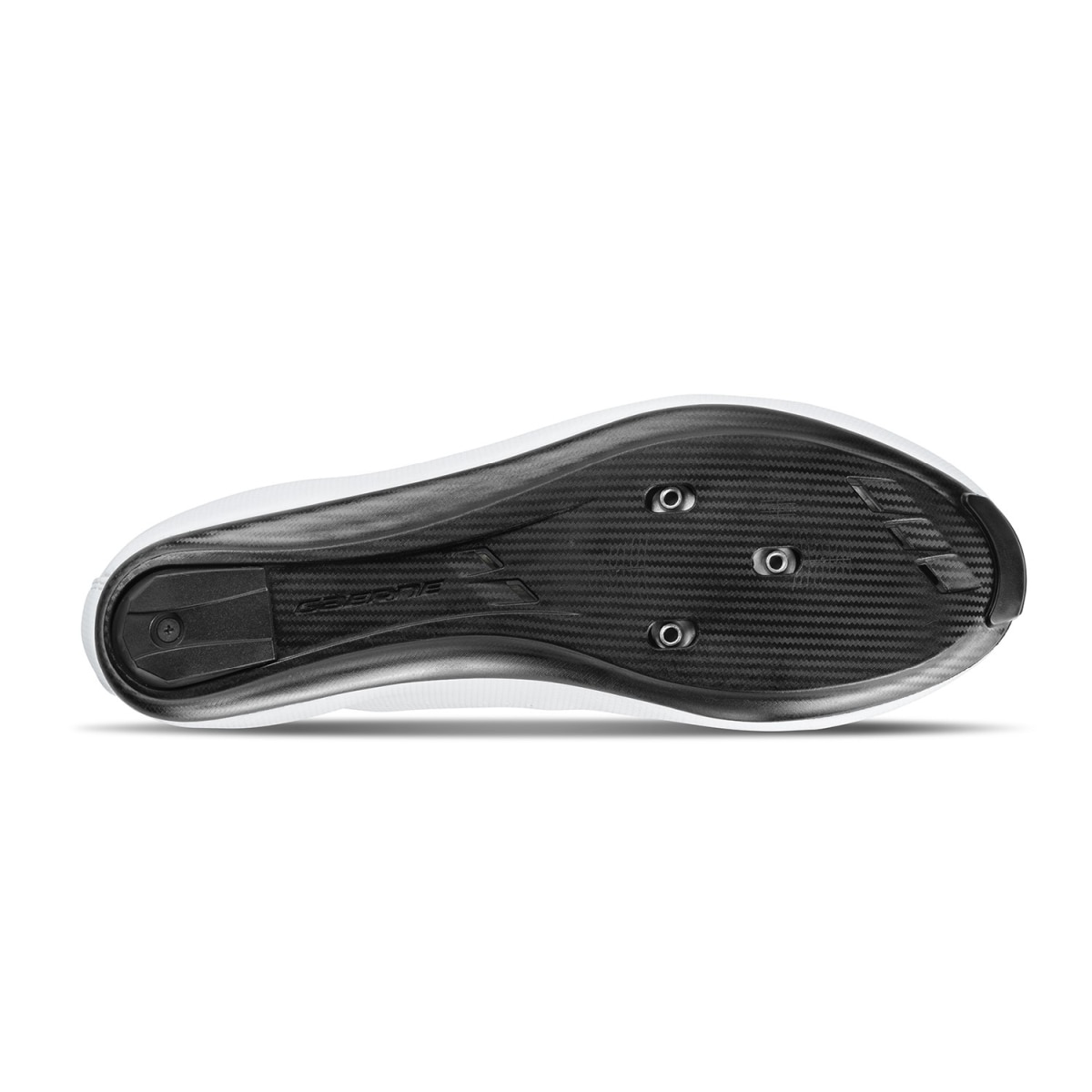 Diese Sohle besteht aus einem mit Carbon angereichertem Nylon, um eine optimale Steifigkeit zu gewährleisten. Die geringe Dicke garantiert ein rundes Treten ohne Energiedispersion. Die Stabilität des Fußes wird durch die Form der Sohle mit Plantarbogenbereich erhöht. Fünf Belüftungsöffnungen sorgen für Ventilation im Schuh. Die Sohle hat einen Anti-Rutsch-Einsatz im Zehenbereich und ein austauschbares Pad im hinteren Bereich. Eine Ausrichtungsskale auf der Sohle ermöglicht, die Position der Schuhplatte zu speichern. Die Optionen für die Stollenposition wurden im Vergleich zur vorherigen Sohle um ca. 9 mm erhöht. Steifigkeitsindex der Sohle: 8.