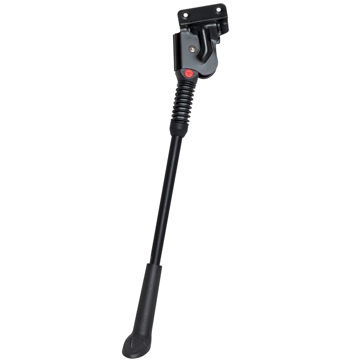 So liegt der Schwerpunkt, besonders bei eingehängten Packtaschen und E-Bike Akkus unter dem Gepäckträger, über dem belastbaren Seitenständer, der das Gewicht über die stabile Verbindung zum Rahmen auch auf weicheren Böden standsicher aufnimmt. Der abriebfeste Kunststoff-Standfuß ist nach oben auf das Standrohr verlängert, fungiert so als drehbare Längenanpassung und schont gleichzeitig die Standrohrbeschichtung beim Einklappen des bewährten Hebie-Federmechanismus. Durch das stufenlos längenverstellbare Standrohr ist der Fix 40 Hinterbau-Ständer für 26 bis 28 Zoll-Fahrräder geeignet.