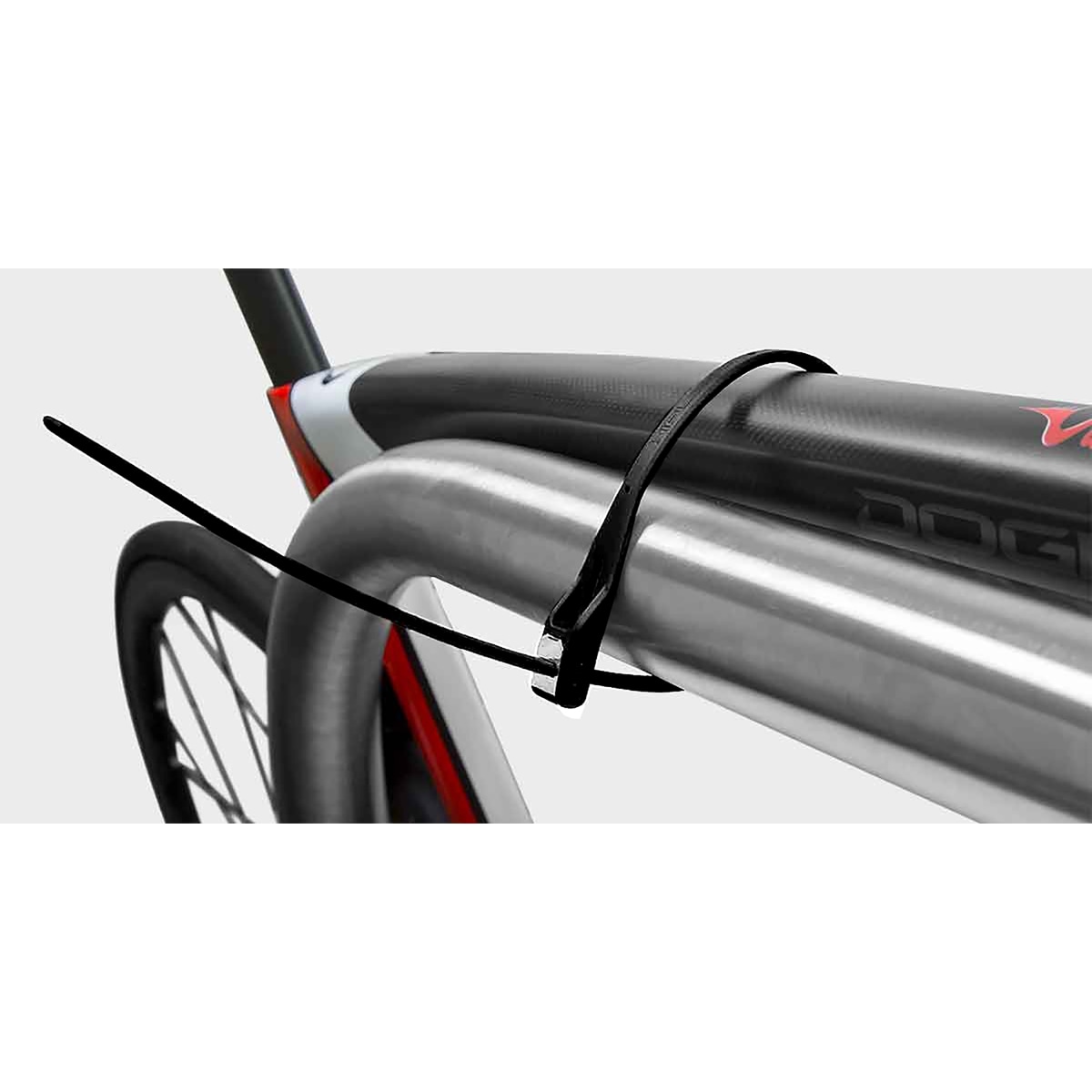 • wiederverwendbares Kabelbinderschloss zur schnellen Sicherung von Bike und Equipment