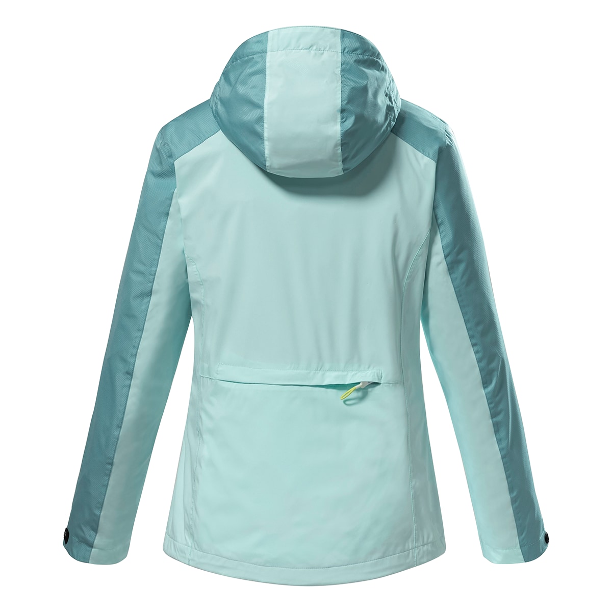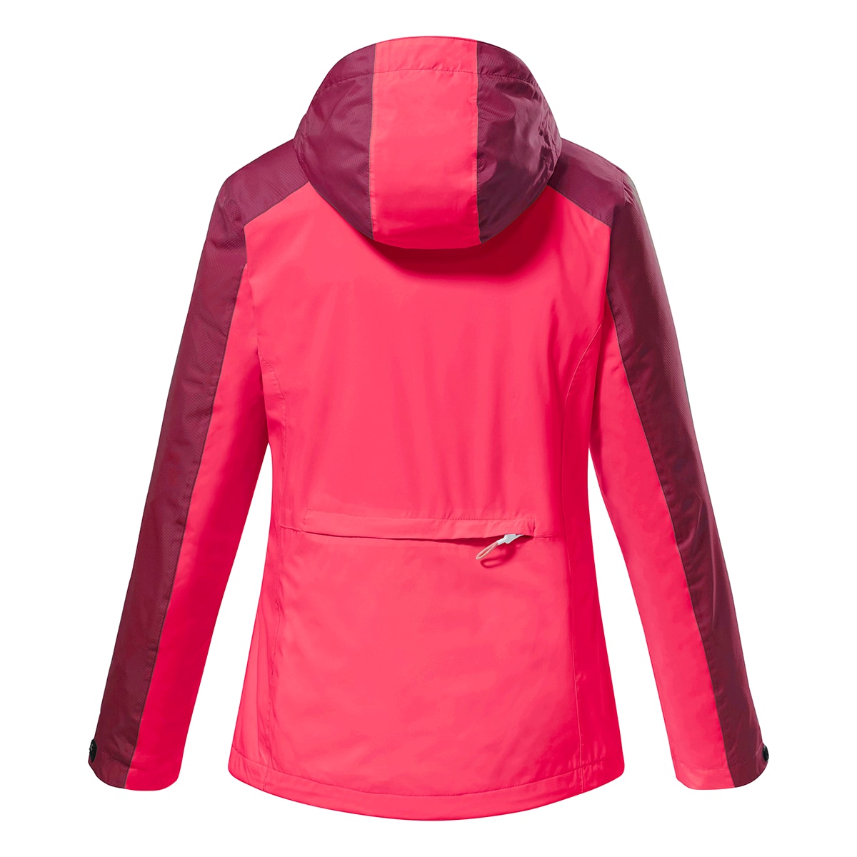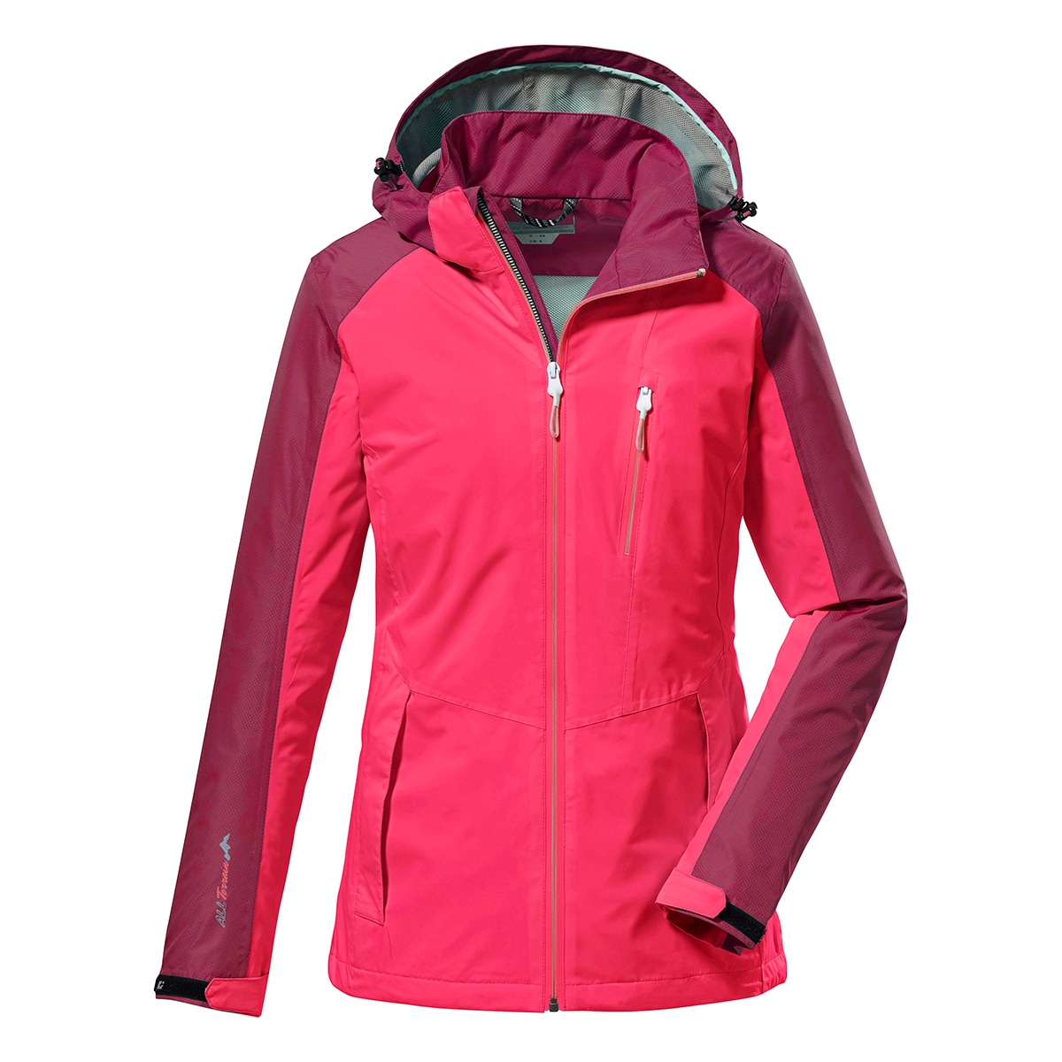 Die sportliche KOS 5 WMN JCKT Damen Regenjacke von killtec mit abnehmbarer und weitenregulierbarer Kapuze, zeichnet sich durch einen hohen Tragekomfort und praktische Details aus. Darüber hinaus verfügt die Outdoorjacke über ein wind- und wasserdichtes PU-Laminat, dass dich stehts trocken an dein Ziel bringt.