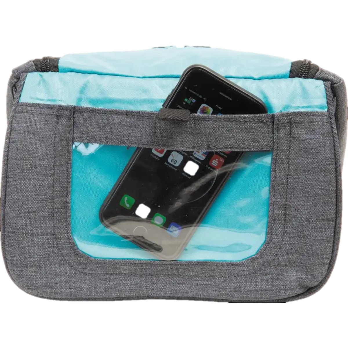 • im Deckel integriertes Smartphone-Fach mit Bedienfenster