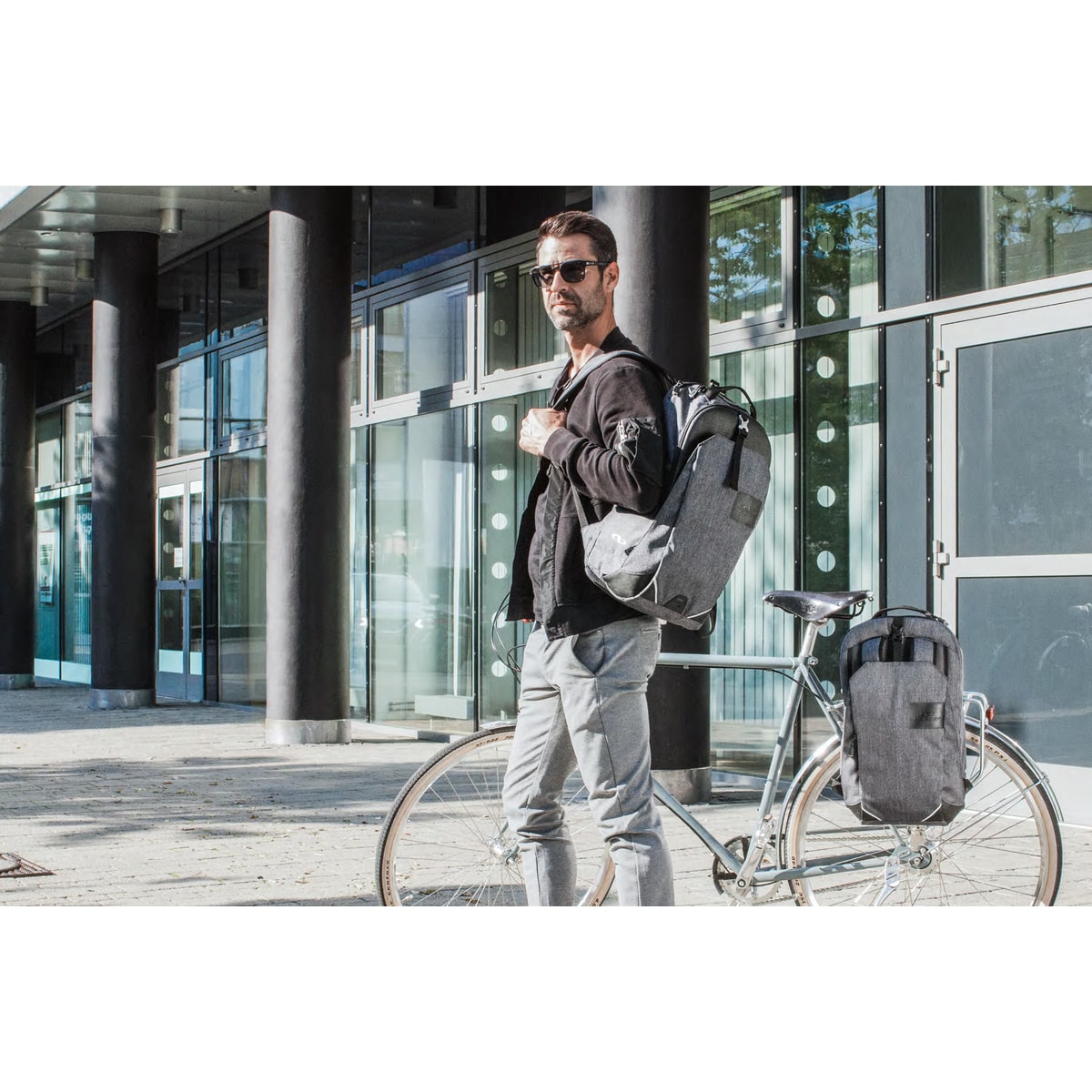 • einfache, schnelle Verwandlung von Gepäckträgertasche zu Rucksack und umgekehrt