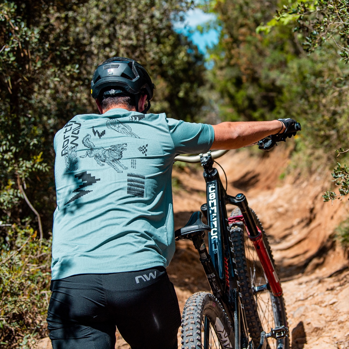 • kurzärmeliges MTB-Shirt für Herren mit Siebdruckgrafiken auf der Rückseite