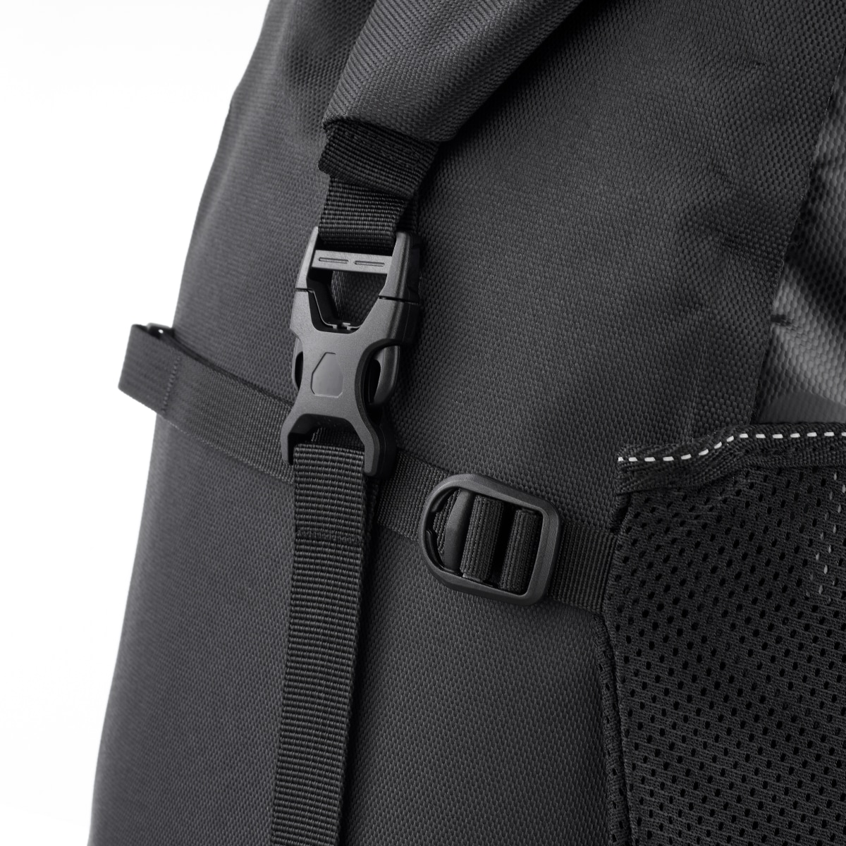 • zwei wasserdichte Hinterradtaschen aus abriebfestem Polyester-Planenmaterial, je eine für links und rechts