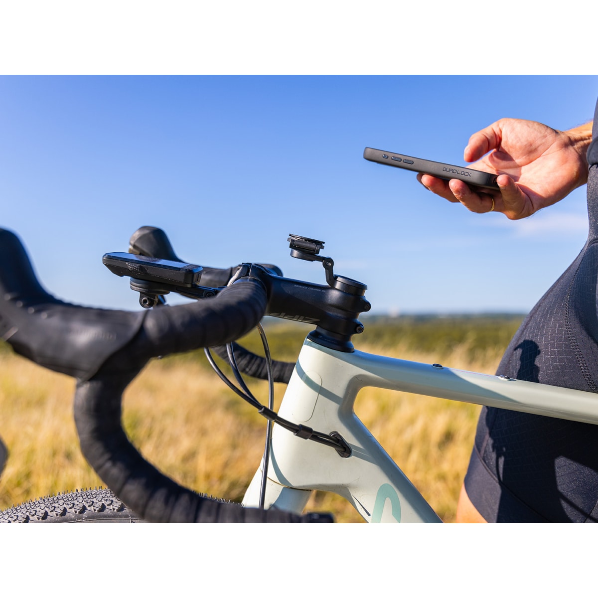 Mit dem Quad Lock Stem Cap Mount sparst du wertvollen Platz am Lenker und integrierst dein Smartphone dezent und funktional direkt über dem Vorbau. Das verstellbare Modell wird sicher zwischen Vorbau und Top-Kappe montiert und eignen sich ideal für Bikes mit klassischen 28,6-mm-Gabelschäften, unabhängig vom Vorbauwinkel.