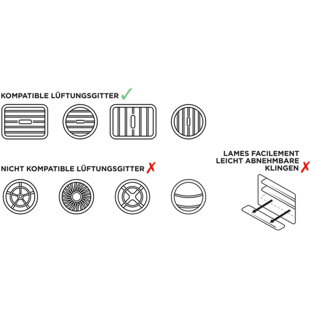 • sorgt mit verstellbarem Haken für festen Halt an vielen Lüftungstypen
