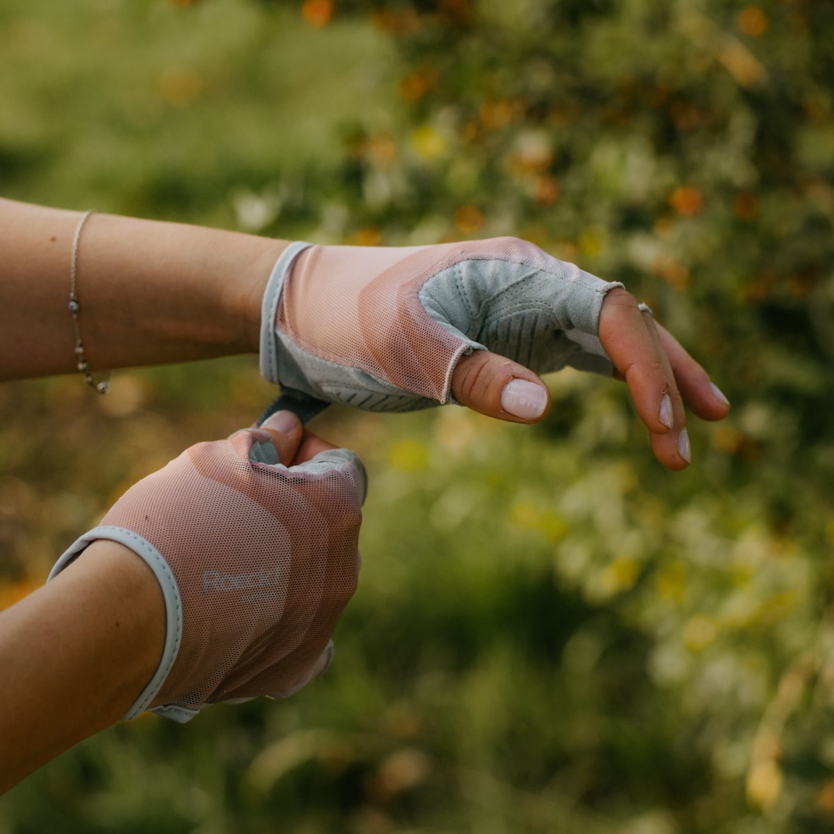 Sehr leichtes, offenporiges und durchbräunendes Oberhandmaterial aus 85 % recyceltem Polyester und 15 % Elasthan, für gleichmäßig sonnengebräunte Handrücken.