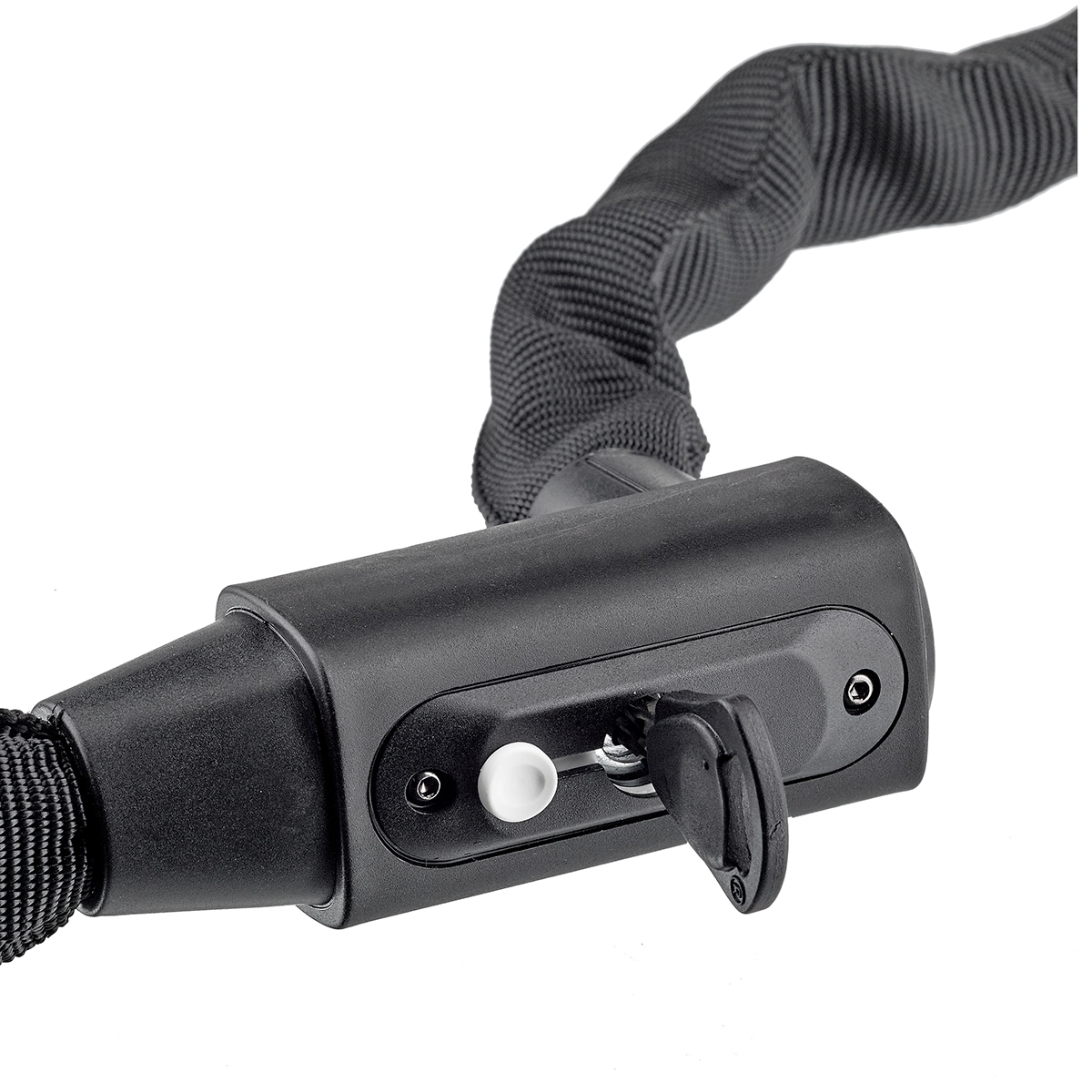 Mit seinen 6 x 6 mm starken Vierkant-Kettengliedern hat dieses Fahrradschloss auch gröberen Aufbruchsversuchen einiges entgegenzusetzen und mit ca. 1,20 m ist es zudem lang genug, um dein Rad unkompliziert an vielen, auch sperrigen Gegenständen anzuschließen.