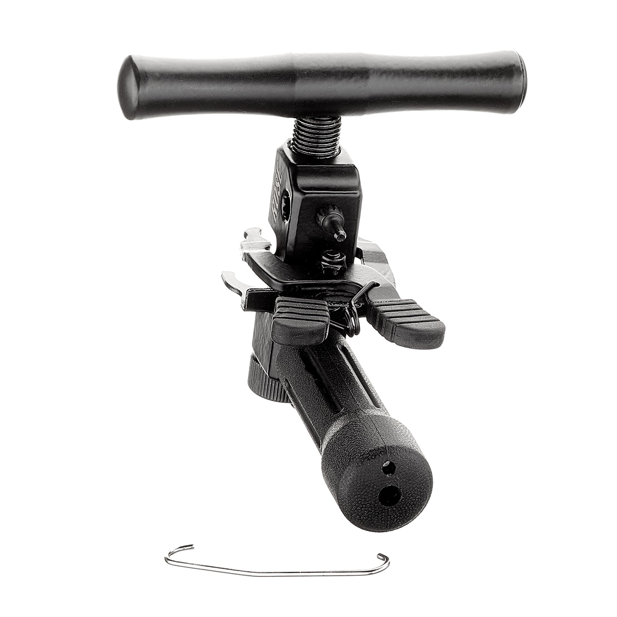 Mit dem ROSE Pinpusher IV findet der Anwender einen sehr robusten Kettennietdrücker, der durch den Einsatz von Werkzeugstahl, gummiertem Griff und langem Aluminiumhebel auch in der Funktion überzeugen kann. Eine zusätzliche Fixiervorrichtung hält die Kettenenden zusammen und ermöglicht das Vernieten der Kette auch unter Spannung.