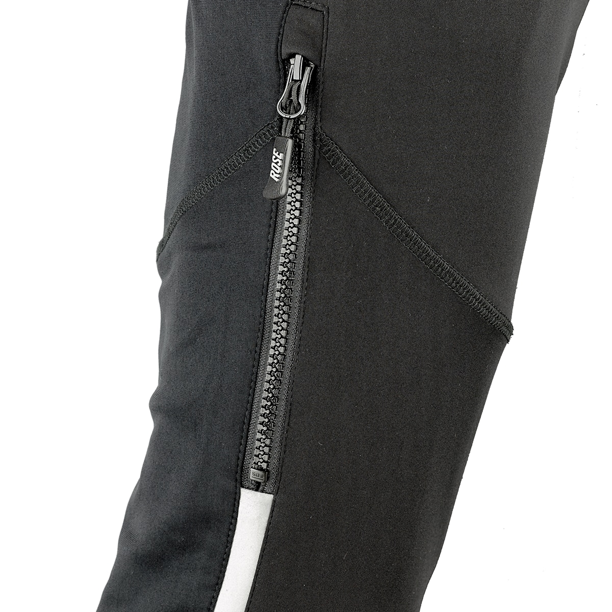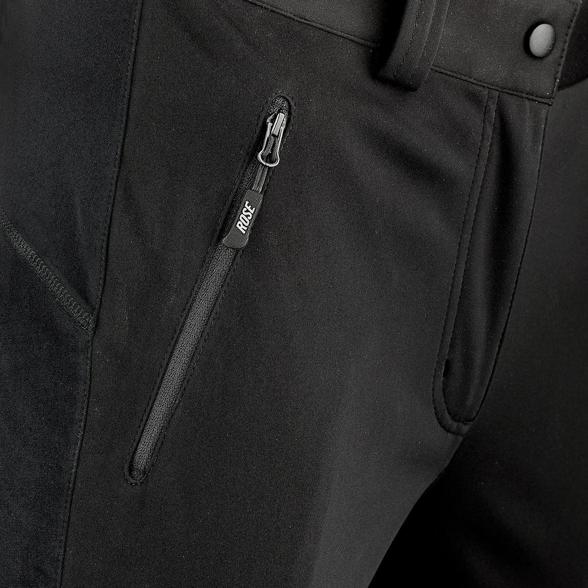 Basierend auf dem Bestseller für Herren JETZT endlich auch für Damen erhältlich. Die ROSE WIND Softshell II Hose für Damen. Sie kombiniert eine sehr weiche Fleece-Innenseite mit einer wind- und wasserabweisenden Softshell-Vorderseite für maximalen Schutz und Tragekomfort. Große, hinterlegte Reißverschlüsse an den Seiten ermöglichen eine bequeme Thermoregulierung in jeder Situation. Der enganliegende Schnitt am Beinabschluss verhindert unerwünschten Kettenkontakt, während hinterlegte Reißverschlüsse trotzdem ein leichtes An- und Ausziehen der Hose erlauben.
