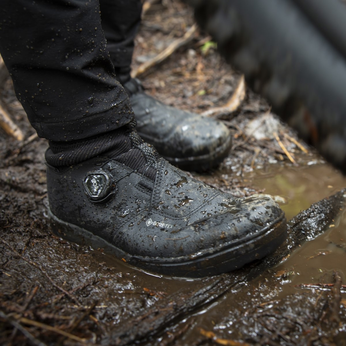 Flatpedal-Schuhe für raue Bedingungen: Ob besonders ruppige Trails oder Bike-Tage bei frischen Temperaturen, die SH-GF800GTX MTB-Schuhe von SHIMANO fühlen sich wohl im Gelände.