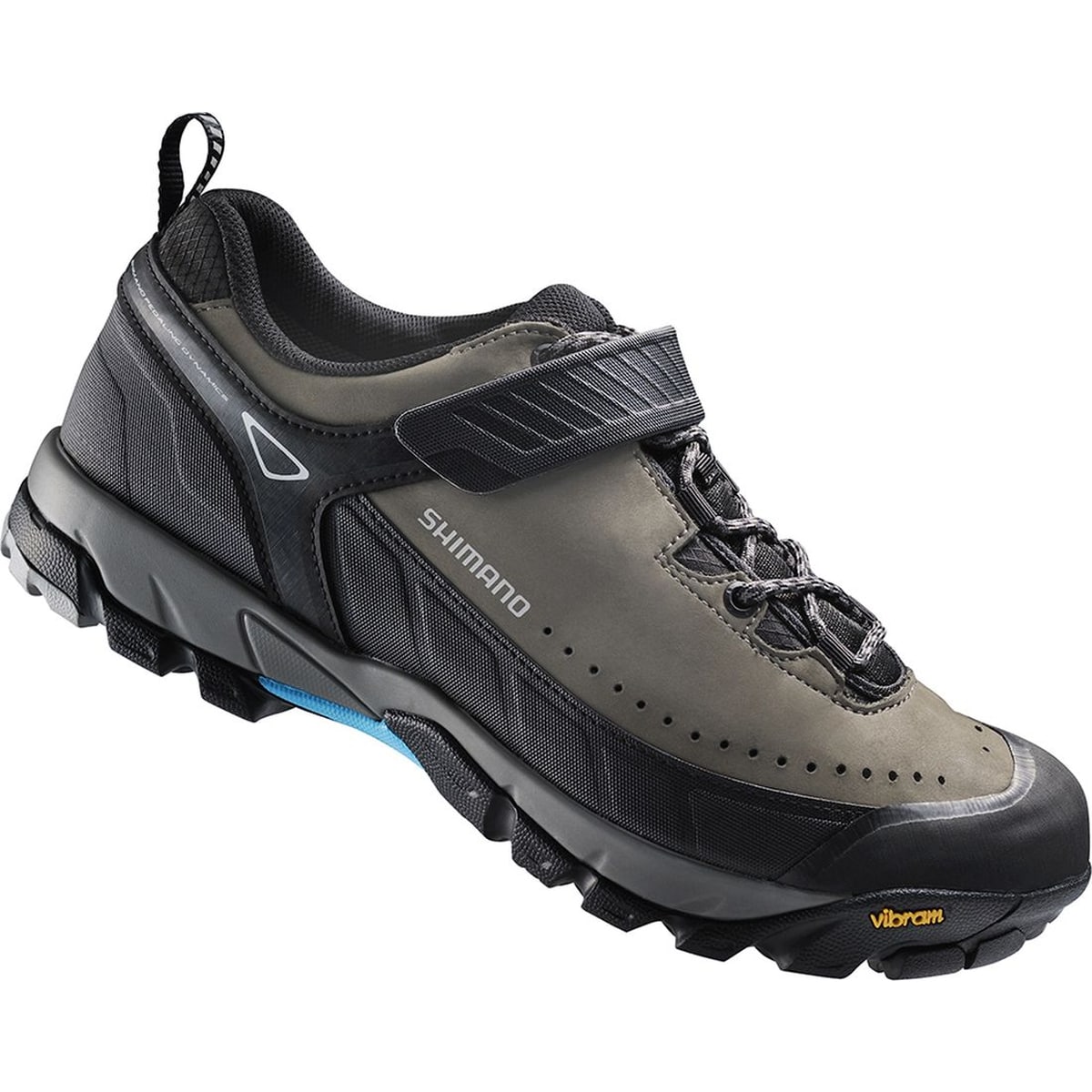 Die SHIMANO SH-XM700 MTB-/Trekking-Schuhe sind dank ihrer GORE-TEX Membrane wind- und wasserdicht. Ihre VIBRAM Sohle sorgt auch bei schlechten Bodenverhältnissen stets für einen sicheren Halt. Leicht und langlebig sind die XM7 Schuhe der optimale Begleiter bei deinen Bike-Abenteuern.