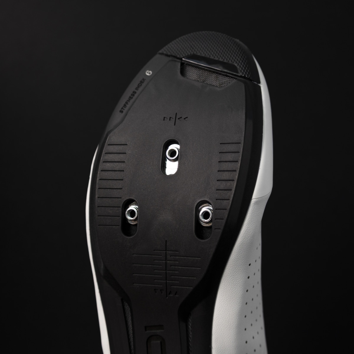 Hochwertige carbonfaserverstärkte Nylon-Sohle für die große Runde: Der Carbonfaseranteil sorgt für eine hervorragende Festigkeit bei gleichbleibendem Komfort im gesamten Fußbereich. Die geringere Steifigkeit (6/12) liefert verlässlichen Energietransfer ins Pedal bei langstreckentauglichem Tragekomfort. Für ein angenehmes Gehen besitzt sie einen rutschfesten, austauschbaren Absatz aus Polyurethan. Die Rennradsohle verfügt über eine Ausrichtungsskala für optimale Positionierung der Schuhplatten und ist mit allen gängigen 3-Loch-Pedalsystemen kompatibel.