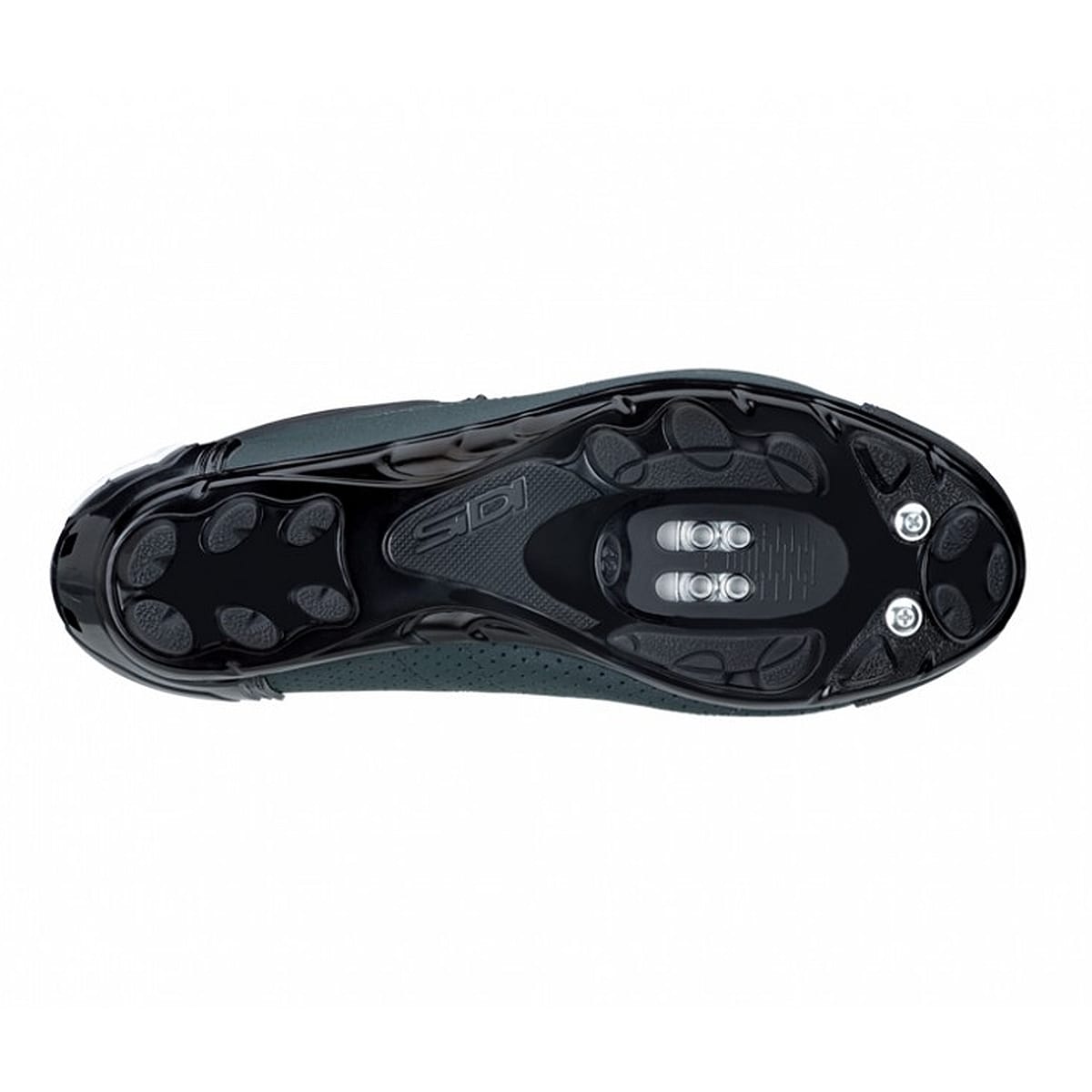 Carbonfaserverstärkte Nylonsohle mit integrierten Kunststoffeinsätzen für optimale Traktion in Laufpassagen. Austauschbare Gewindeeinsätze im Cleatbereich. Gewindeeinsätze für optionale Stollen.