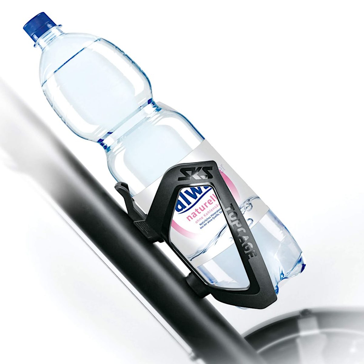 Der leichte und robuste Der SKS TOPCAGE Flaschenhalter aus hochfestem Kunststoff nimmt neben klassischen Fahrrad-Trinkflaschen auch großvolumige Formate und PET-Flaschen auf. Die variable Halteklammer sorgt für eine sichere Arretierung der verschiedenen Flaschengrößen. Dank des flexiblen Materials lässt sich die Trinkflasche leicht einstecken und wieder entnehmen.