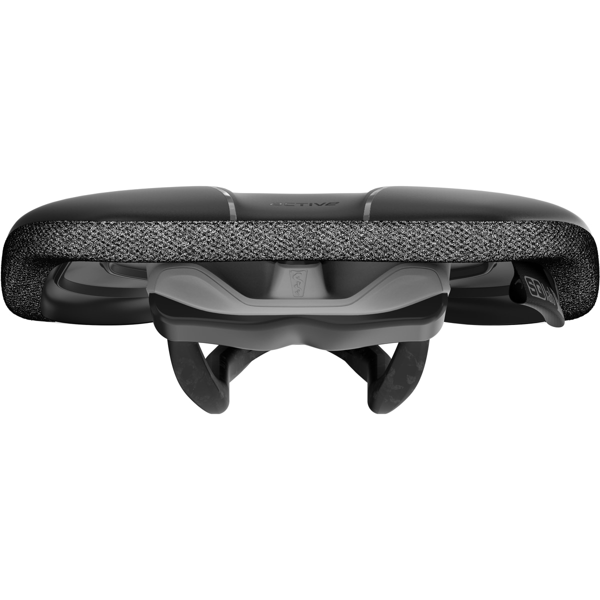 Dazu besitzt der Sattel eine stufenförmige Sitzfläche, die dein Gewicht gezielt auf die Sitzknochen verteilt, während Druck von sensiblen Bereichen ferngehalten wird. Zudem ermöglicht die tieferliegende Sattelnase in Kombination mit der Vertiefung in der Mitte mehr Platz und Freiraum für den Dammbereich für Frauen und Männer. Darüber hinaus besitzt der Sattel ein erhöhtes Heck, das dir mehr Halt und damit auch eine bessere Kraftübertragung bei steilen Anstiegen verschaffen kann.